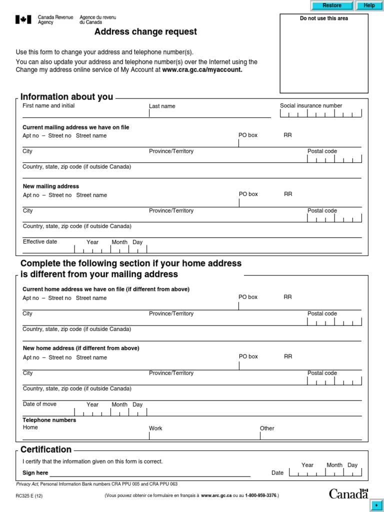 Form Rc325 Download Fillable Pdf Or Fill Online Address Change Request Canada Templateroller